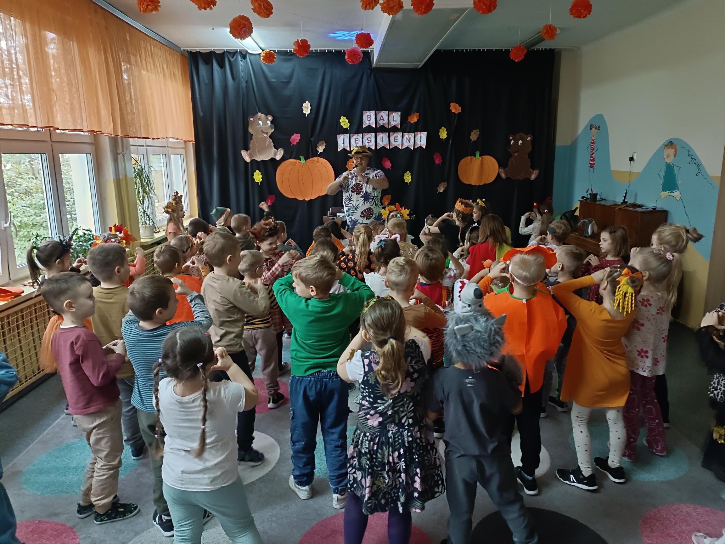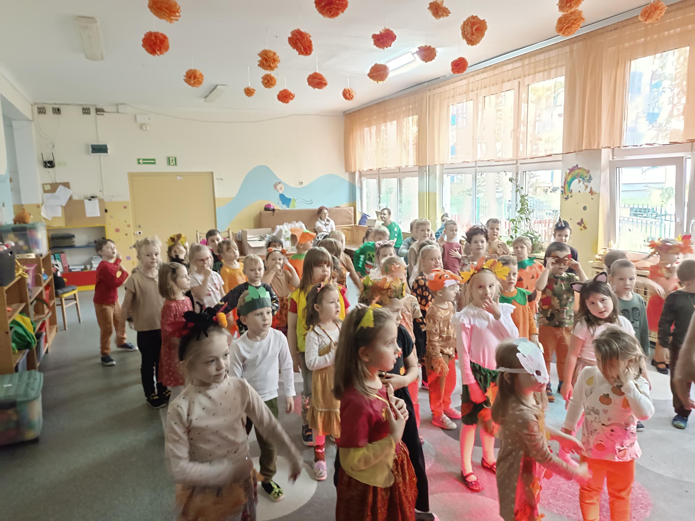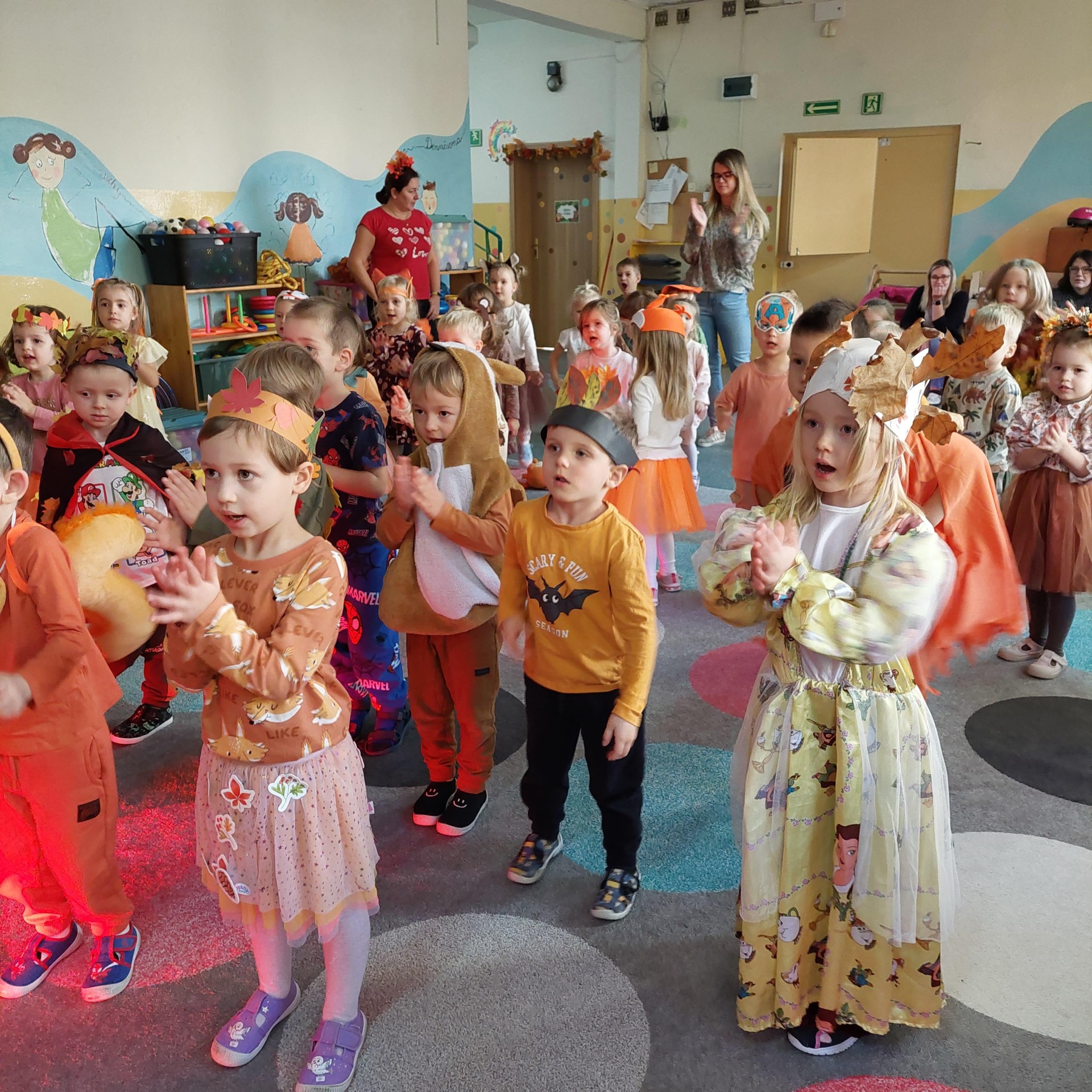 Dziś odbył się Bal Jesieni. Było kolorowo i radośnie — dzieci przyszły ubrane w piękne jesienne stroje, a w powietrzu unosiła się atmosfera zabawy i tańca. Nie zabrakło też piosenek o jesieni i wspólnych zabaw ruchowych.