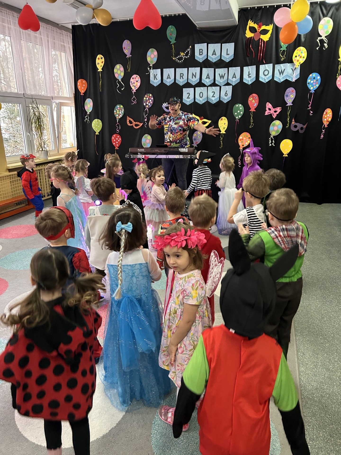 17.02.2026 w naszym przedszkolu odbył się Bal Karnawałowy, który poprowadził Pan Arek.