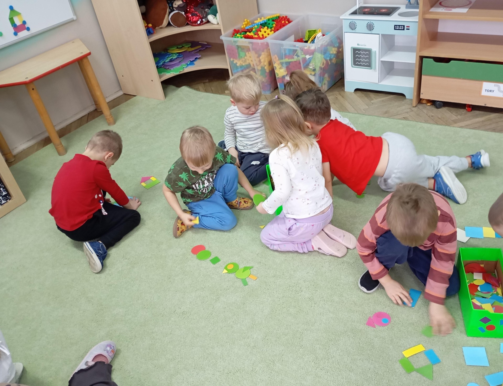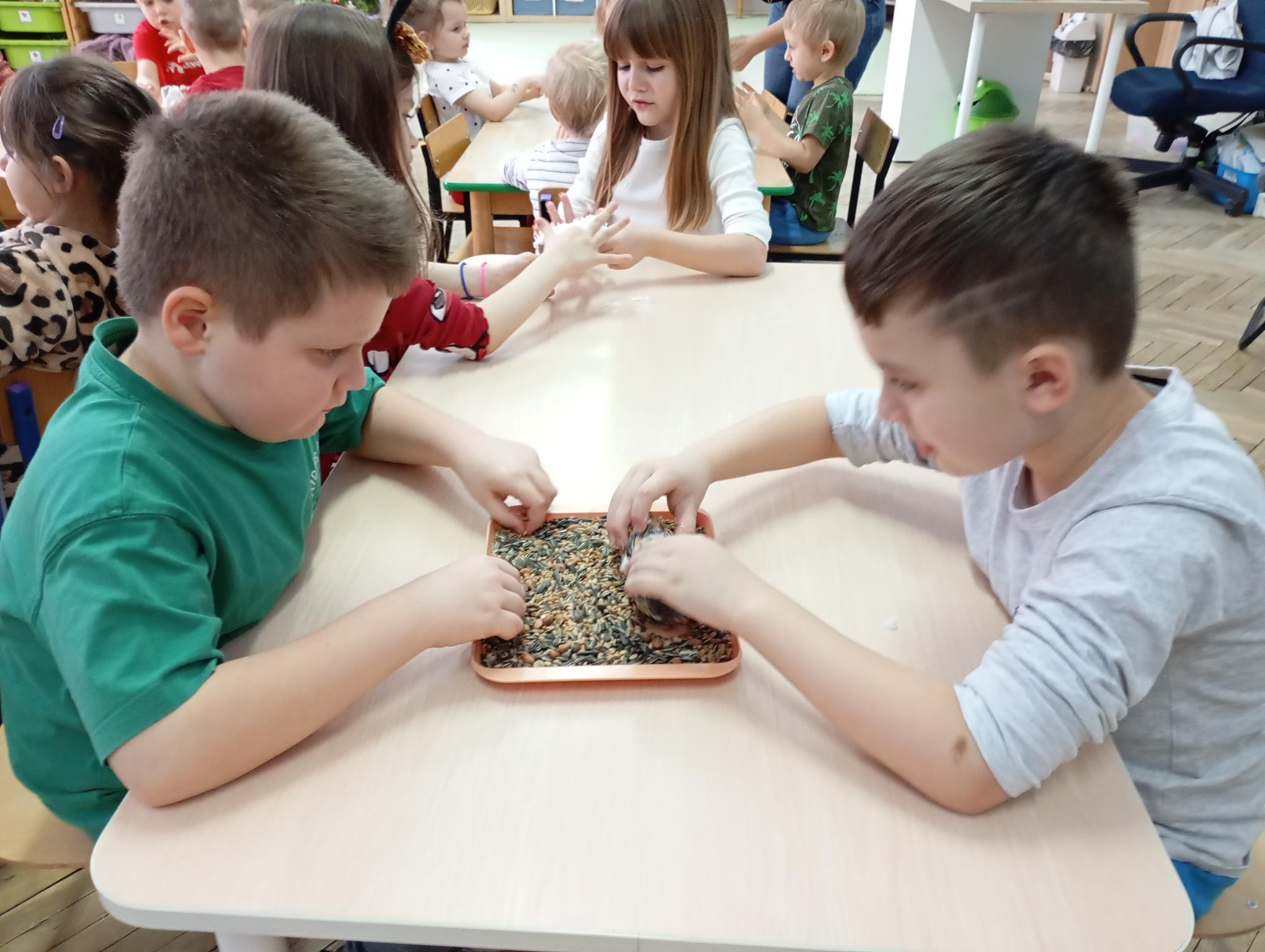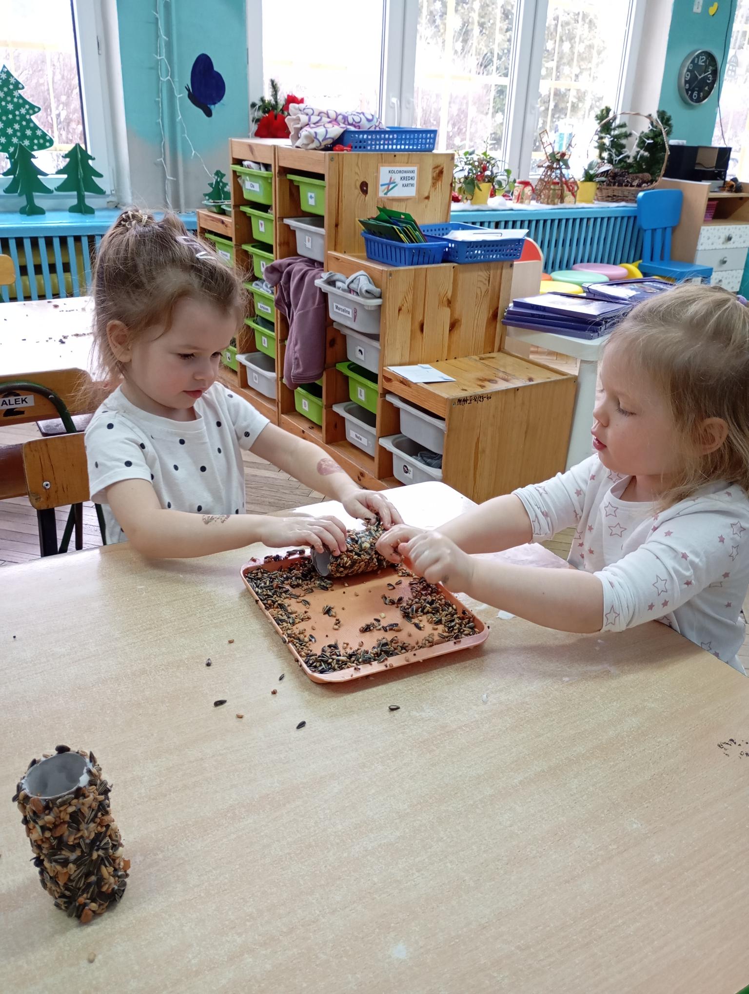 Promyczki układały karmniki z figur geometrycznych ,ale również wykonały prawdziwe karmniki. Karmniki zostały wywieszone w ogrodzie a Promyczki mogą obserwować przez okno przylatujące na posiłek ptaki.