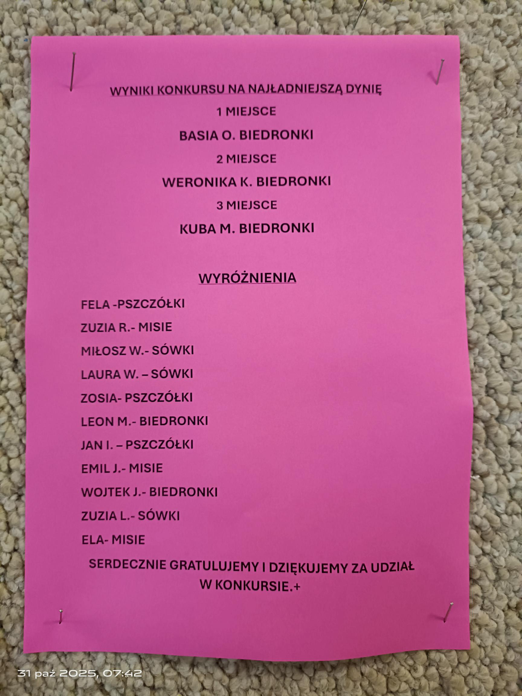 Rozstrzygnięcie konkursu na najładniejszą dynie