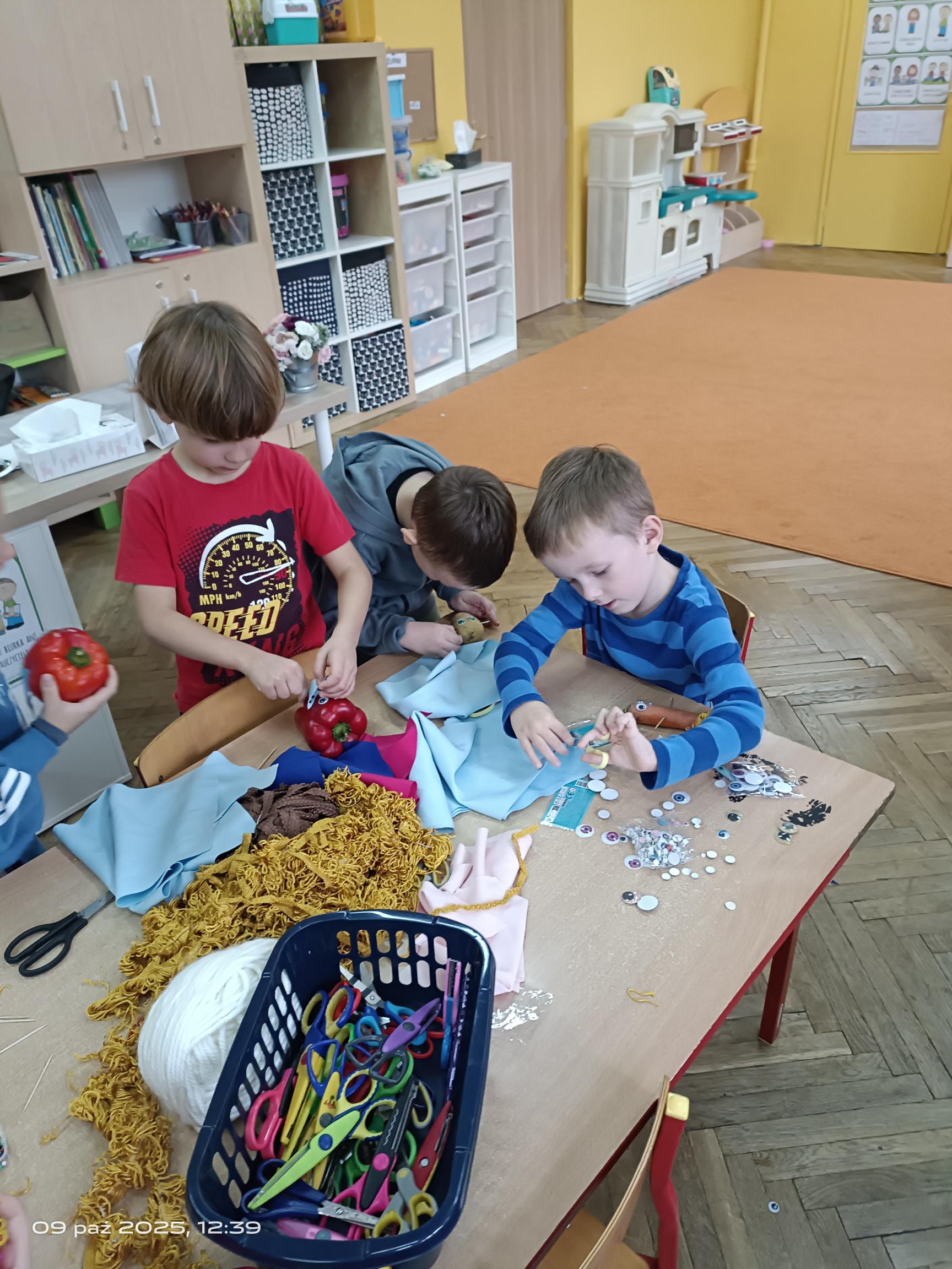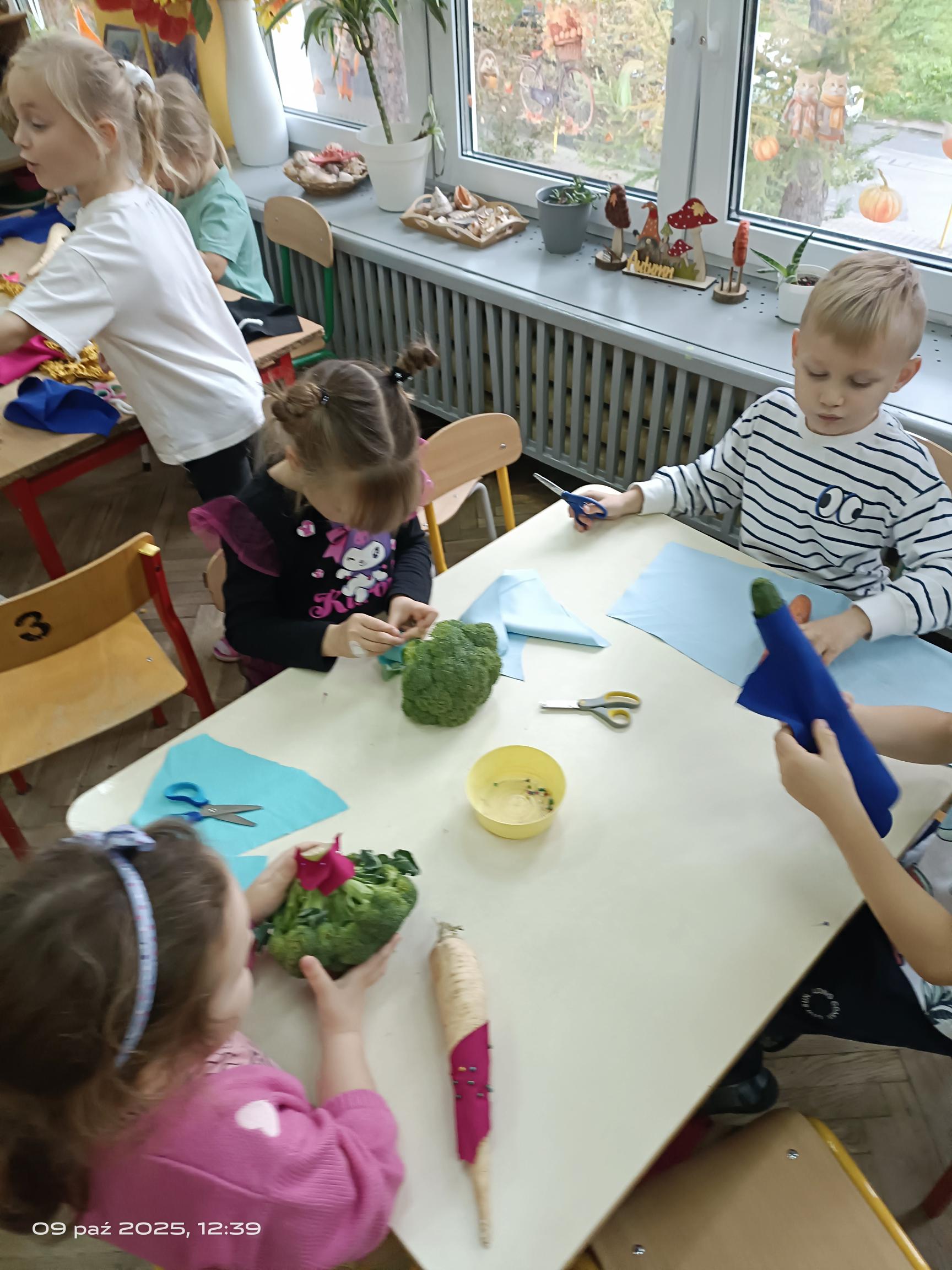 Zajęcia, na których dzieci wykonywały warzywne kukiełki.